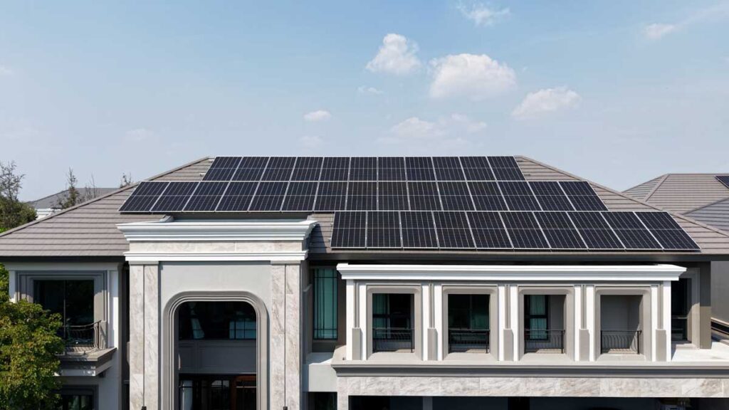 เนื่องจากตำแหน่งหลังคาบ้านหันไปทางทิศใต้ทำให้การติดตั้งโซลาร์เซลล์ ต้องคำนึงถึงทั้งประสิทธิภาพในการรับแสงและความสวยงาม ประกอบกับพื้นที่ดังกล่าวได้รับแสงแดดในช่วงเช้าไม่เต็มที่ ทีมงาน KG Solar จึงออกแบบระบบโซลาร์เซลล์ให้สอดคล้องกับทิศทางแสงและพฤติกรรมการใช้ไฟฟ้า เพื่อให้สามารถผลิตพลังงานได้อย่างมีประสิทธิภาพตลอดทั้งวัน ในขั้นตอนการติดตั้งโซลาร์เซลล์ทีมงานได้วางแผนเดินระบบไฟโดยเลือกซ่อนแนวท่อและเดินระบบใต้ฝ้าเพดาน เพื่อความเรียบร้อยสวยงาม ไม่กระทบต่อดีไซน์ของบ้าน และยังช่วยอำนวยความสะดวกต่อการตรวจสอบและบำรุงรักษาระบบในระยะยาว